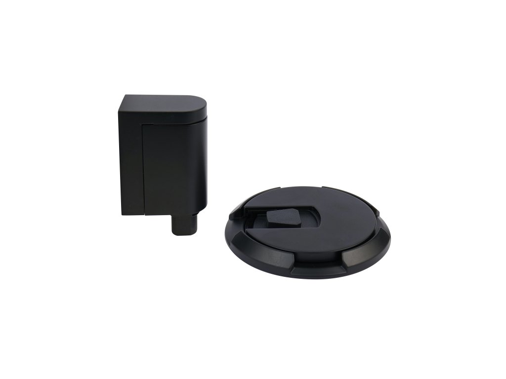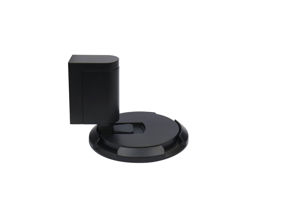 - Zarážka se zajistí otevřením dveřního křídla do spodní části zarážky (umístěné na podlaze) pootočením vnějšího prstence. Opětovným zatlačením do dveřního křídla zarážku odjistíte (vnější prstenec se pootočí do otevřené polohy).