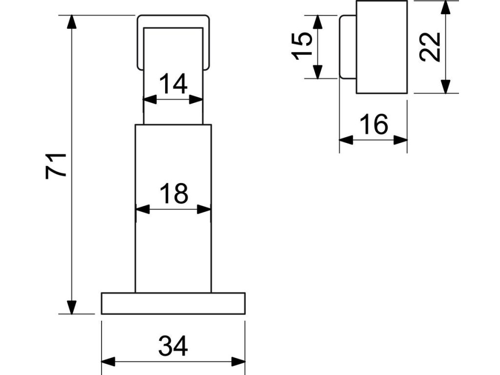 - Výška/průměr základny/průměr těla/průměr magnetu: 71 x 34 x 18 x 14 mm