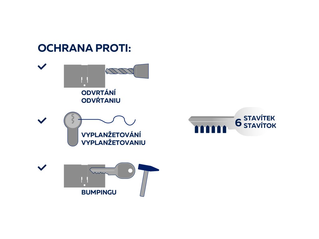 - 6-ti stavítková vložka s odolností proti odvrtání a nedestruktivní metodě tzv. bumpingu