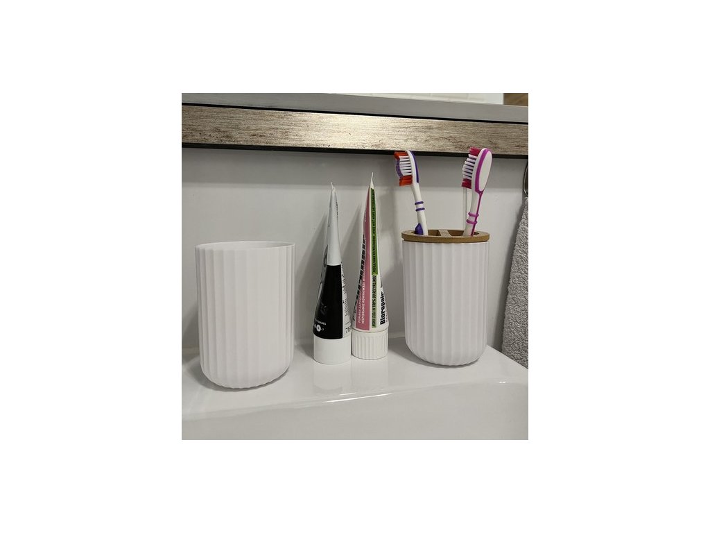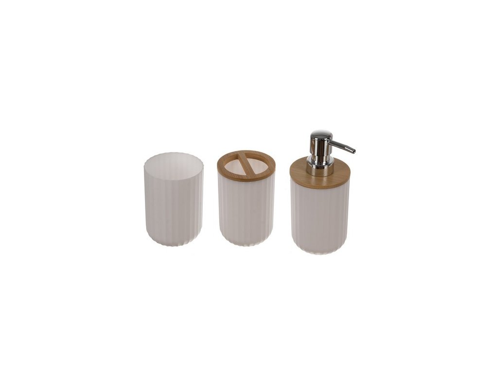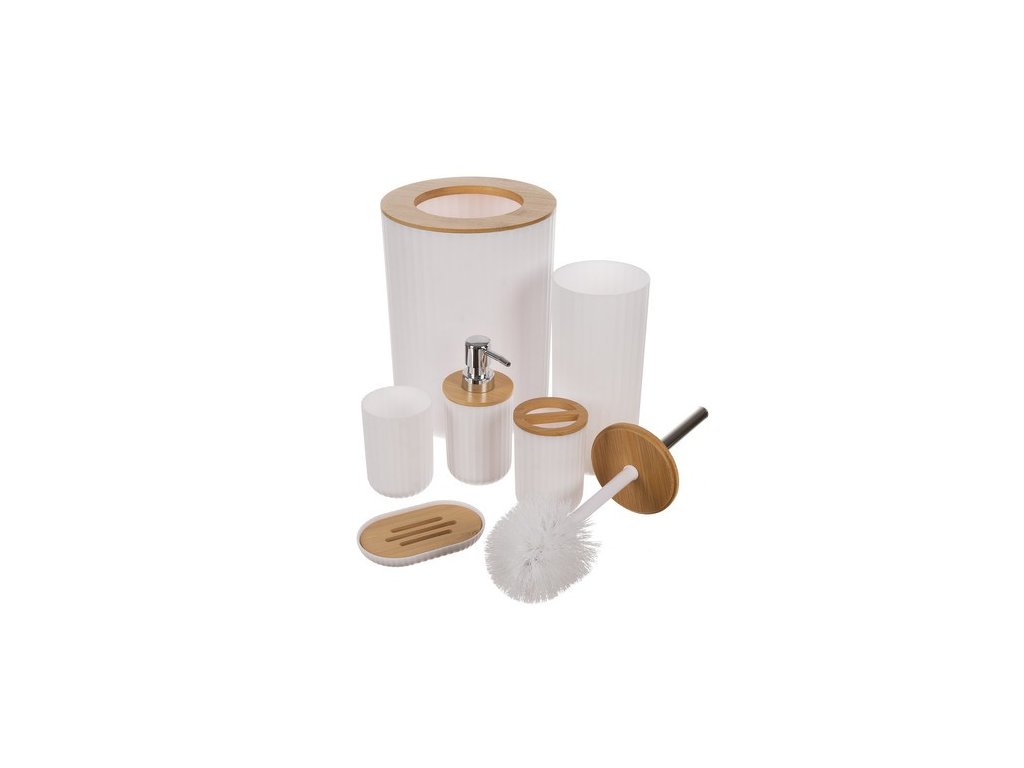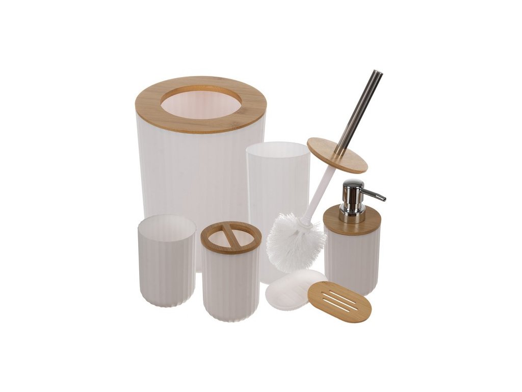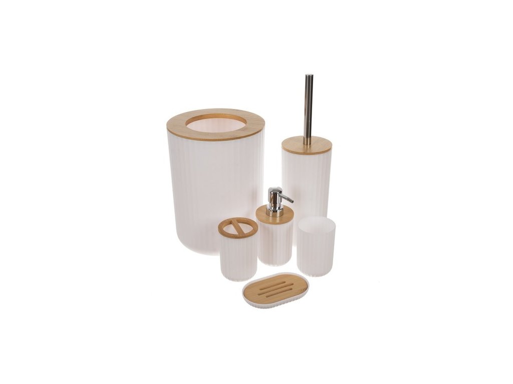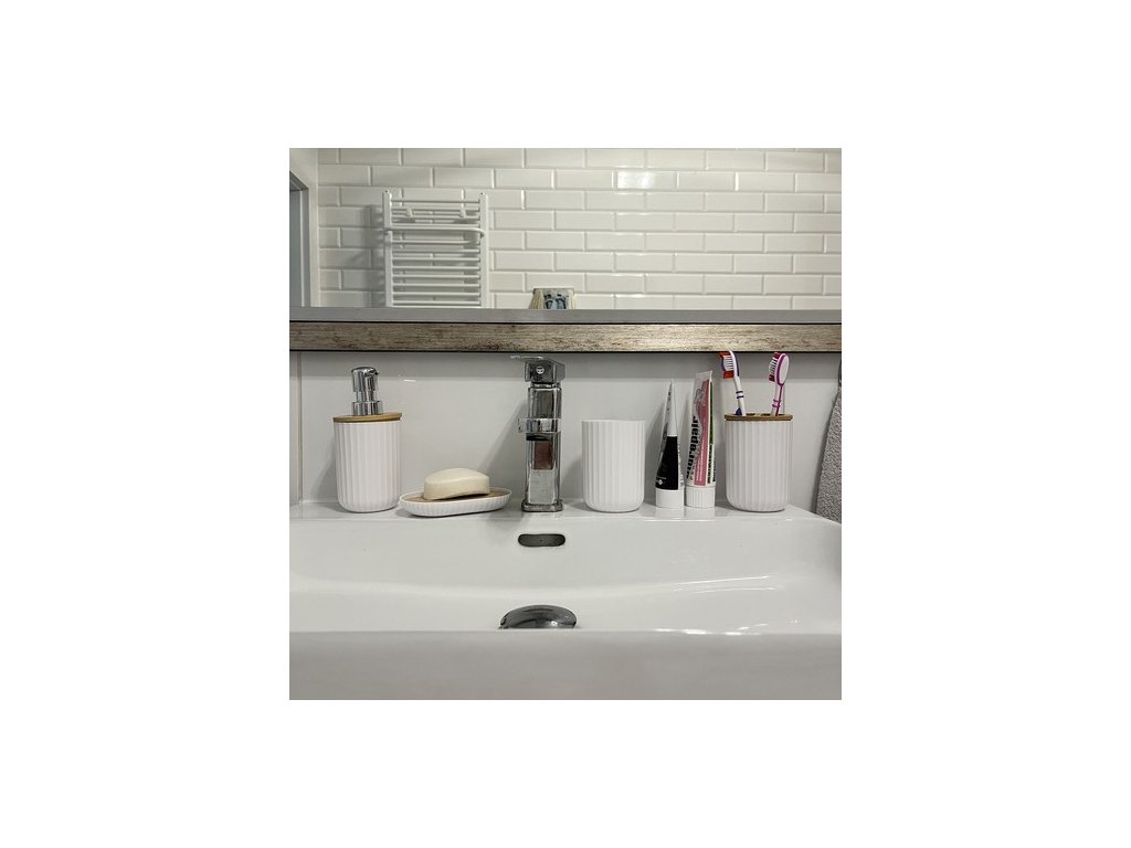 - Kompletní sada: Obsahuje všechny nezbytné doplňky, včetně dávkovače na mýdlo, držáku na zubní kartáčky, koše na odpadky a dalších, což usnadňuje organizaci vaší koupelny.
