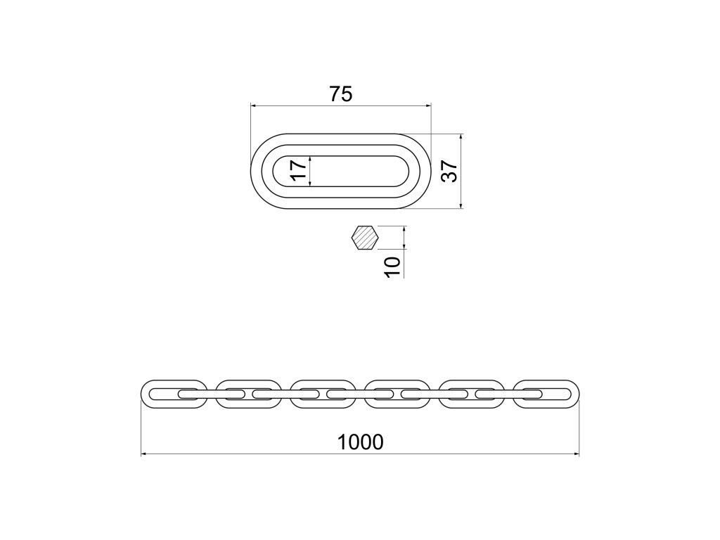 - Oko řetězu Ø 10 mm, délka 3000 mm